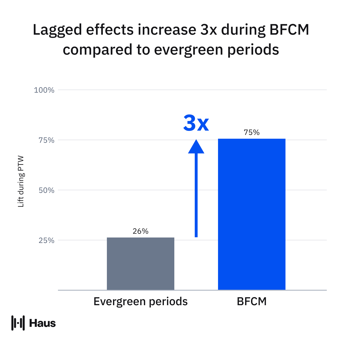 - Apply the Haus âlag multiplierâ to evaluate performance. Haus can help brands apply a multiplier to real-time ROAS to estimate true Cyber Week â or other promotional period â impact.