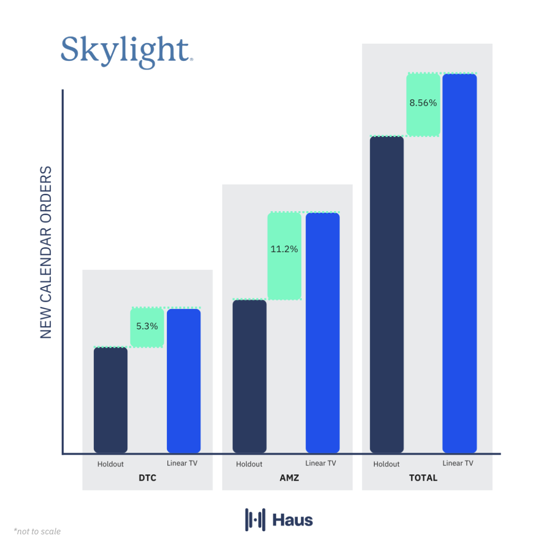 But the Skylight team saw opportunity where others hesitated. They believed Linear could unlock reach and awareness that digital alone couldn’t — especially for a category as new and visually intuitive as digital calendars. What they needed was a reliable, defensible way to quantify its true business impact across both DTC and Amazon.